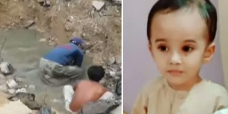 ريسڪيو عملدارن موجب، ٻار جو لاش 14 ڪلاڪن کانپوءِ هڪ نالي مان مليو، جيڪو واقعي واري هنڌ کان تقريباً ڏيڍ ڪلوميٽر پري هو.
